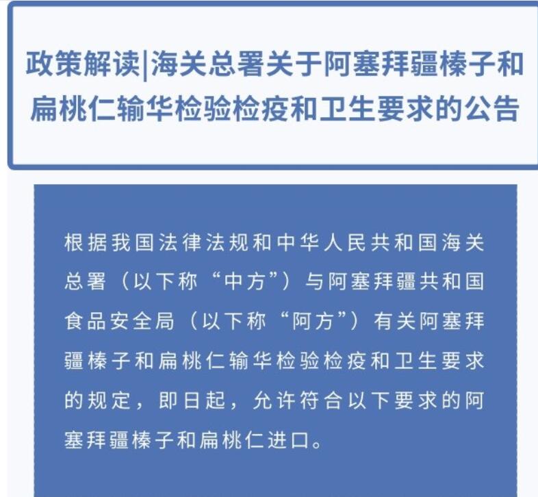 政策解讀-海關總署關于進口阿塞拜疆榛子和扁桃仁檢驗檢疫和衛(wèi)生要求的公告